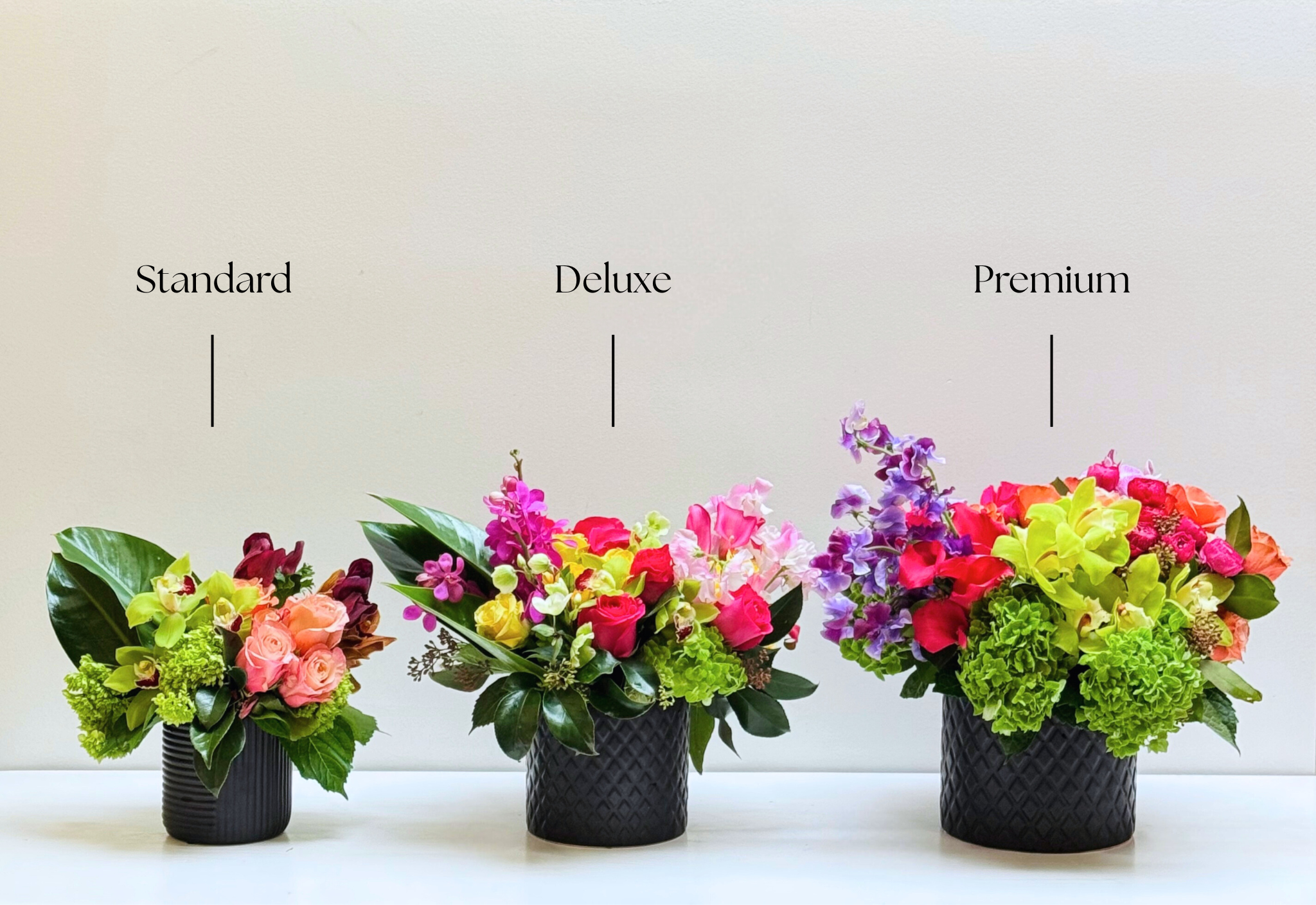 Our designers will create a beautiful arrangement with the most magnificent blooms mother nature has to offer. While we cannot guarantee a specific flower type, we can promise that your arrangement will be stunning, fresh and one of a kind!