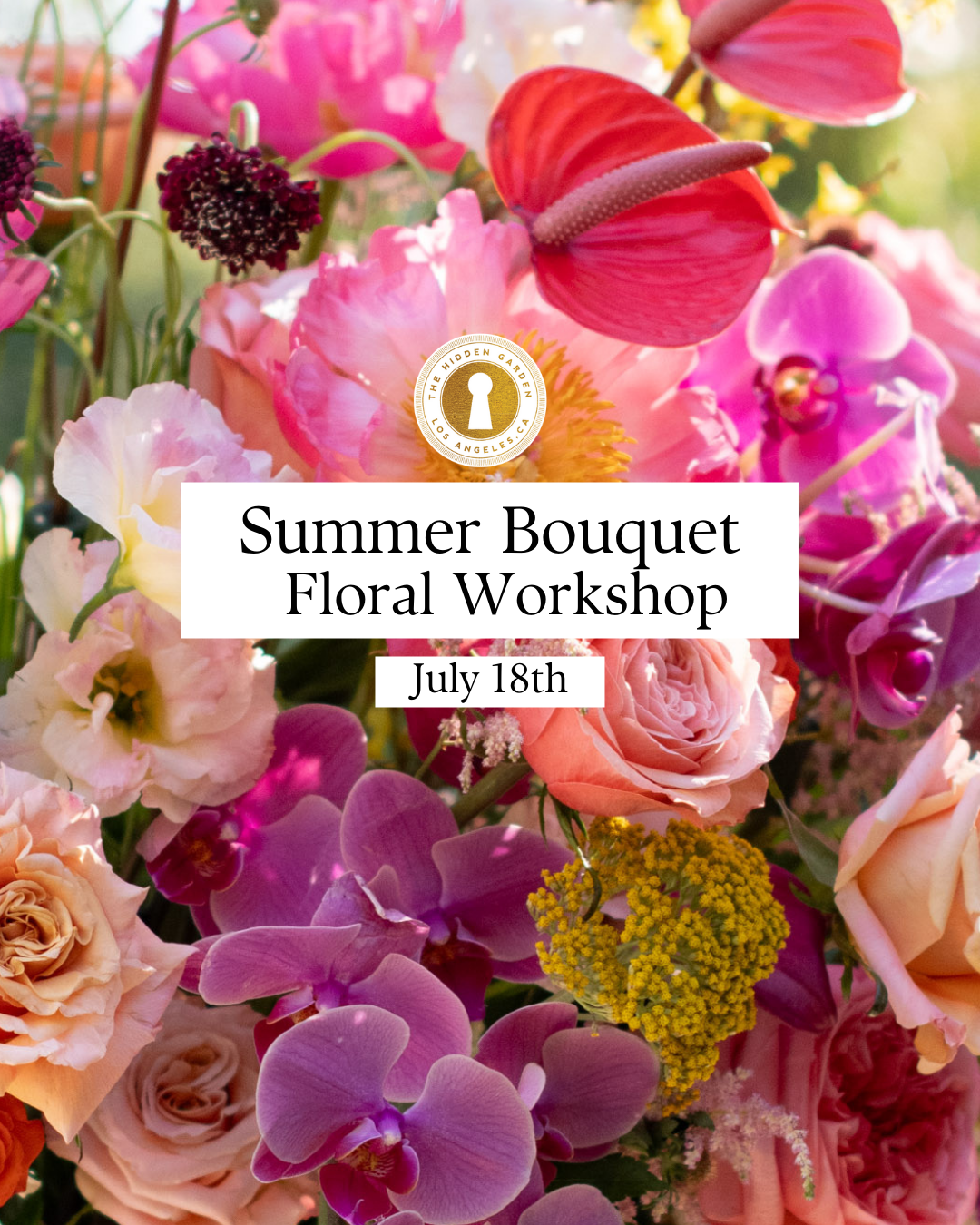 Step into a summer bloom dream at the Hidden Garden Studio with our Summer Bouquet workshop. This hands-on class is all about exploring the beauty and versatility of one of the most beloved blooms! You’ll learn expert techniques, pro tips, and floral design fundamentals as you create a lush, garden-inspired arrangement to take home. Perfect for beginners and flower lovers of all kinds.