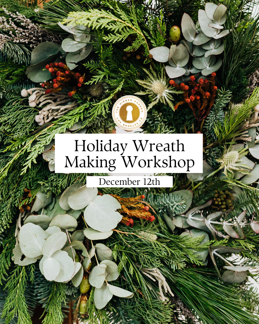 Get into the festive spirit at the Hidden Garden Studio with our Holiday Wreath Making class! In this hands-on workshop, you’ll craft your own fresh holiday wreath using seasonal greenery, berries, and decorative accents. Whether you're making it for your front door or gifting it to someone special, this cozy class is the perfect way to kick off the holiday season with creativity and cheer.