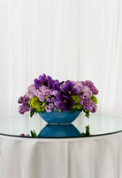 Lovely lilac, hydrangea, lisianthus, and roses in shades of purple and lavender tones
