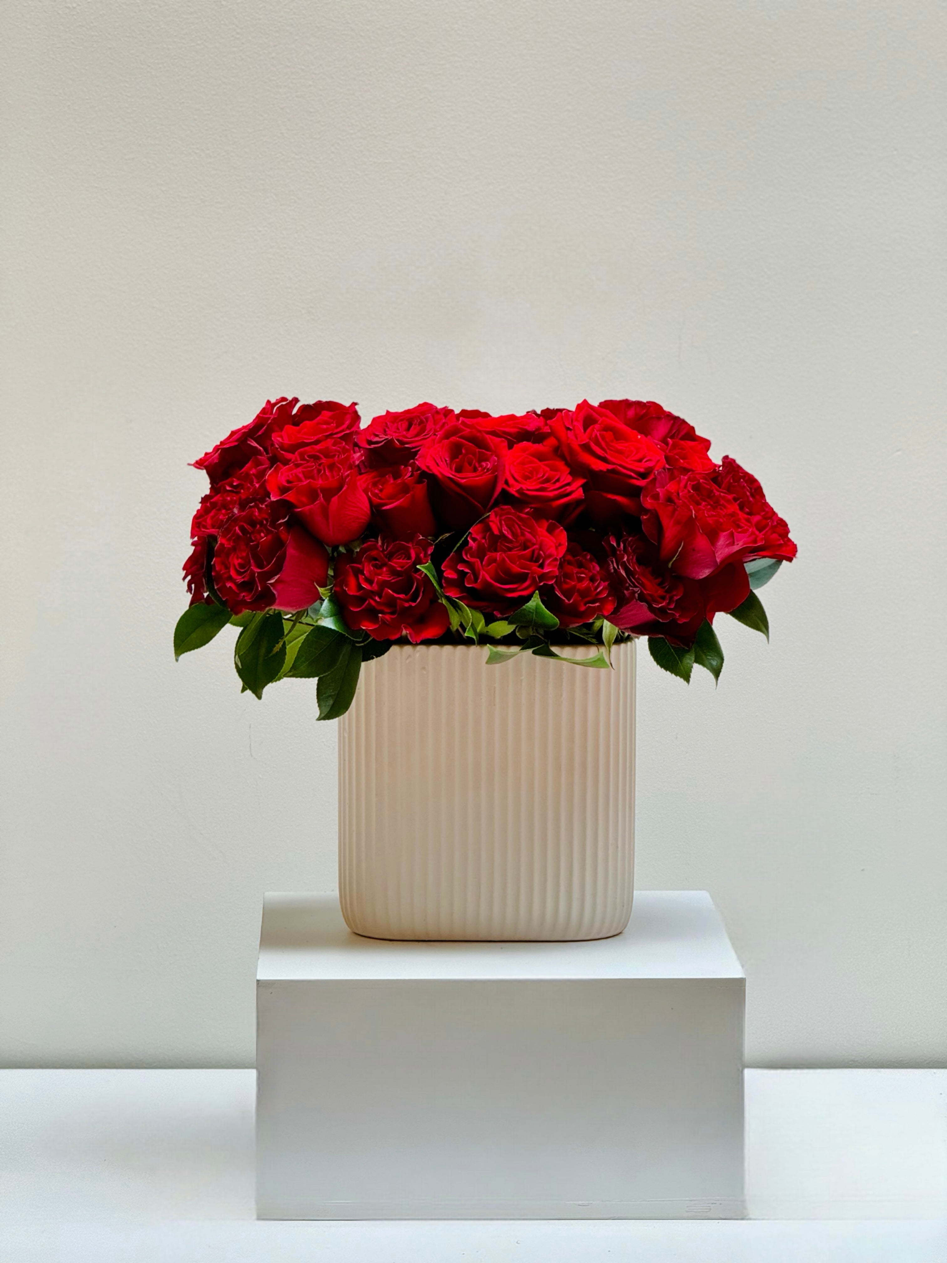 Red roses are the ultimate symbol of deep passionate love. For centuries they’ve been used to communicate romantic feelings to whoever receives them. It’s why they appear in every romcom, their meaning is clear, your heart skips a beat for this person.